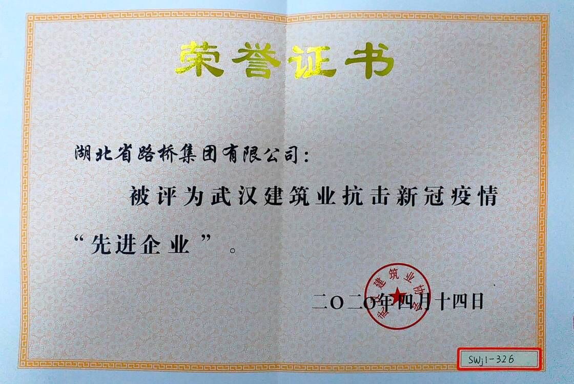 2020年武漢建筑業(yè)抗擊新冠疫情“先進企業(yè)”