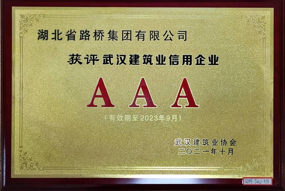 2021年武漢建筑業(yè)信用企業(yè)等級證書(信用等級:AAA)