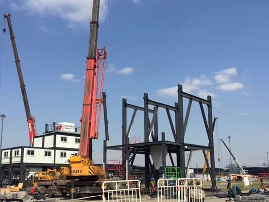 今天是上海寶馬展南方路機(jī)展品進(jìn)場(chǎng)安裝的第三天。在安裝團(tuán)隊(duì)成員間的積極配合下,各項(xiàng)安裝工作按計(jì)劃進(jìn)行中,瀝青混合料攪拌設(shè)備和干混砂漿攪拌設(shè)備主樓基礎(chǔ)層已經(jīng)搭建起來(lái)。
