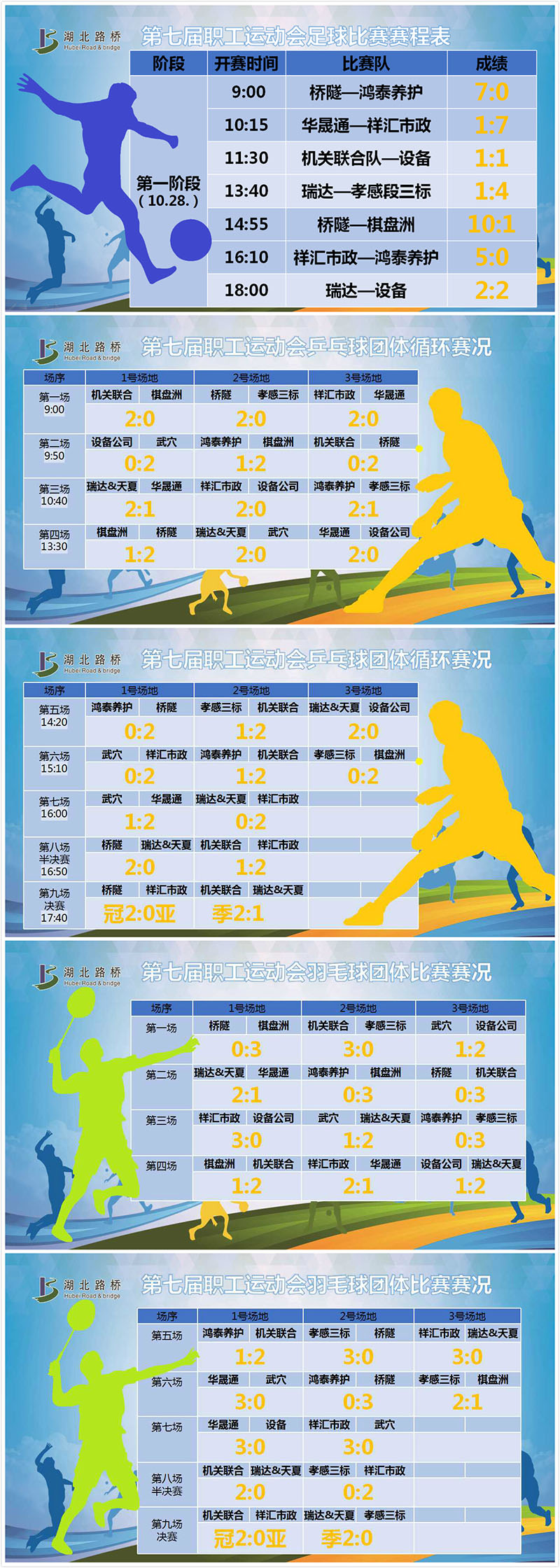 金秋十月寓意收獲,活力路橋演繹精彩。10月28日上午,路橋集團第七屆職工運動會在公司足球場隆重開幕。路橋集團黨委書記、執(zhí)行董事、總經(jīng)理周俊,特別"來"賓梓山湖公司總經(jīng)理黃宗遠,路橋集團常務副總經(jīng)理丁峻,黨委副書記、紀委書記、副總經(jīng)理劉祖雄,副總經(jīng)理潘新平,副總經(jīng)理李高磊,財務總監(jiān)余瑞華及營銷總監(jiān)龔勇出席開幕式,來自集團本部、分子公司和直屬項目10支隊伍,共200多名運動員及裁判參加了開幕式。