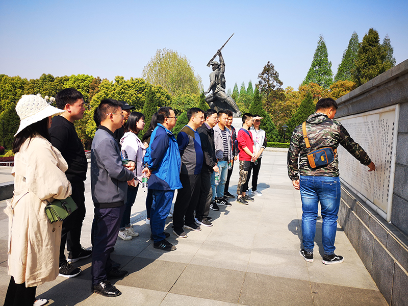 7日上午,項目部一行二十余人懷著無比崇敬的心情來到教育活動的第一站——黃麻起義和鄂豫皖蘇區(qū)革命烈士陵園。邁過大門,穿過一片林蔭大道,來到巍然聳立的烈士紀(jì)念碑前,大家瞻仰先烈,認(rèn)真閱讀碑文,感受革命先驅(qū)為家、為國的大無畏犧牲精神。“小小黃安,人人好漢。銅鑼一響,四十八萬。男將打仗,女將送飯”,紀(jì)念碑背面這首簡單的童謠更是敲擊著我們的內(nèi)心:是無數(shù)的烈士用他們的生命和鮮血換來我們今天的幸福生活,我們還有什么理由不珍惜?!