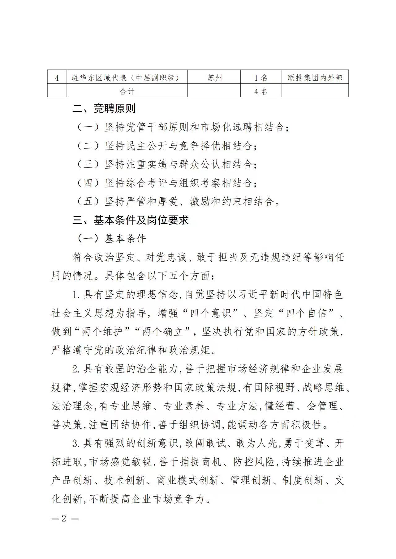 關(guān)于駐湖北聯(lián)投區(qū)域公司總部管理崗位公開競聘的通知