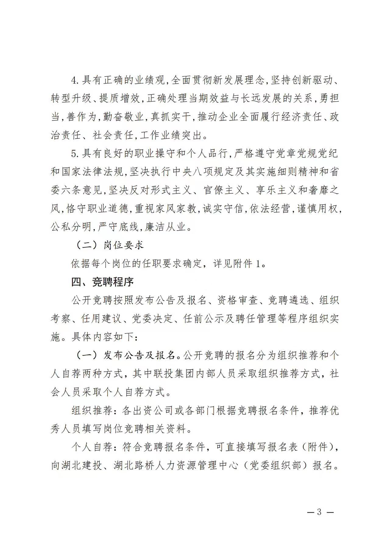 湖北省建設(shè)投資集團有限公司、湖北省路橋集團有限公司駐湖北聯(lián)投區(qū)域公司總部管理崗位公開競聘報名初審公示