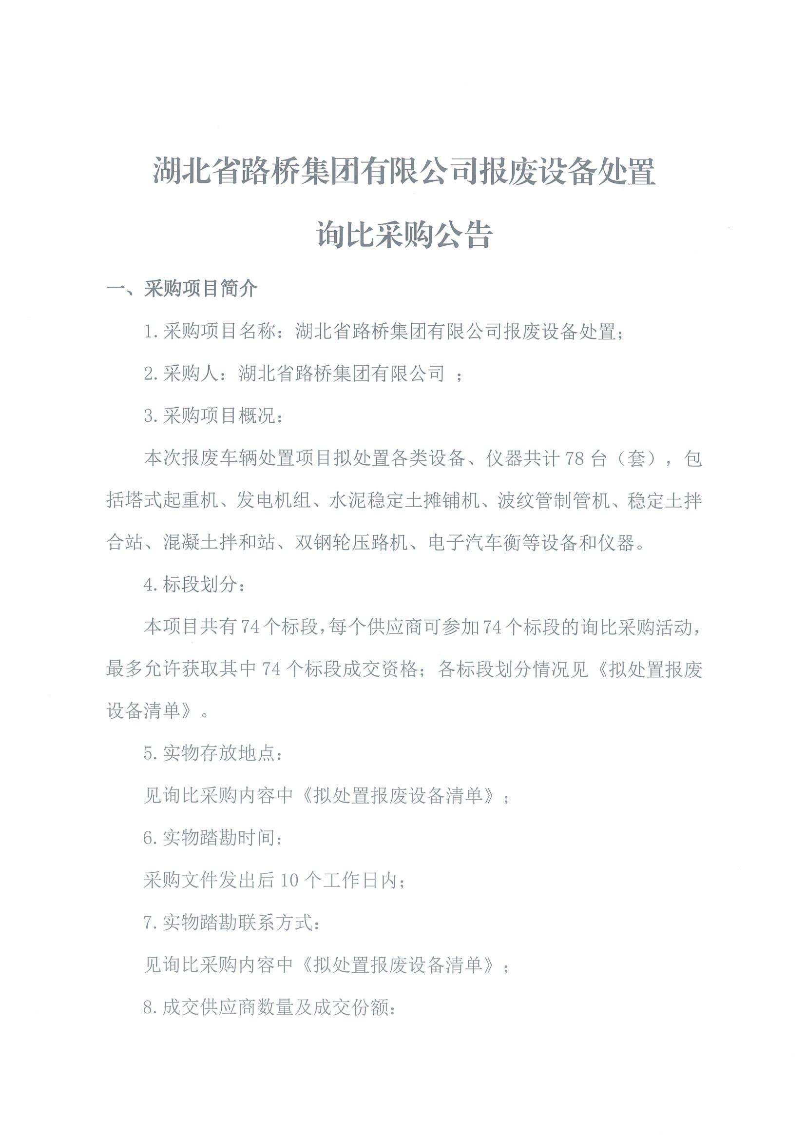 湖北省路橋集團(tuán)有限公司報(bào)廢設(shè)備處置詢(xún)比采購(gòu)公告