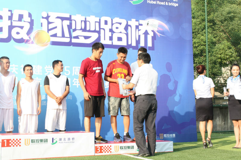 金秋九月彩旗飄揚,運動賽場青春激蕩!兩天的角逐,美好而短暫,為每一個聯(lián)投人留下了"運動、健康、快樂"的美好回憶。9月11日下午4點半,伴隨著明媚陽光,聯(lián)投集團第一屆 "激情聯(lián)投 逐夢路橋"球類邀請賽閉幕式在路橋集團足球場舉行,為本次邀請賽畫上了圓滿句號。聯(lián)投集團綜合辦公室主任、工會副主席項益明,聯(lián)投集團建管部部長高俊普、副部長付漢江,聯(lián)投集團綜合辦公室副主任王進力等領(lǐng)導(dǎo)出席此次閉幕式并為獲獎集體頒獎,路橋集團工會主席馬建剛主持了閉幕式。