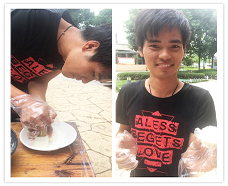 品嘗月餅也是中秋節(jié)的習(xí)俗之一,如果能品嘗自己親手制作的月餅,這個中秋節(jié)肯定更加難忘?;顒拥诙椌褪侵谱鞅ぴ嘛灒蠹乙贿呑约簞邮趾捅?、包餡、壓花定型,一邊相互交流著關(guān)于中秋和月餅的故事??此坪唵蔚闹谱鬟^程,要做出漂亮的月餅也讓大家費了不少心思。有些止不住饞的小伙伴,還沒等做完就迫不及待的嘗鮮了,也有些舍不得吃的,說要帶回家與家人分享。